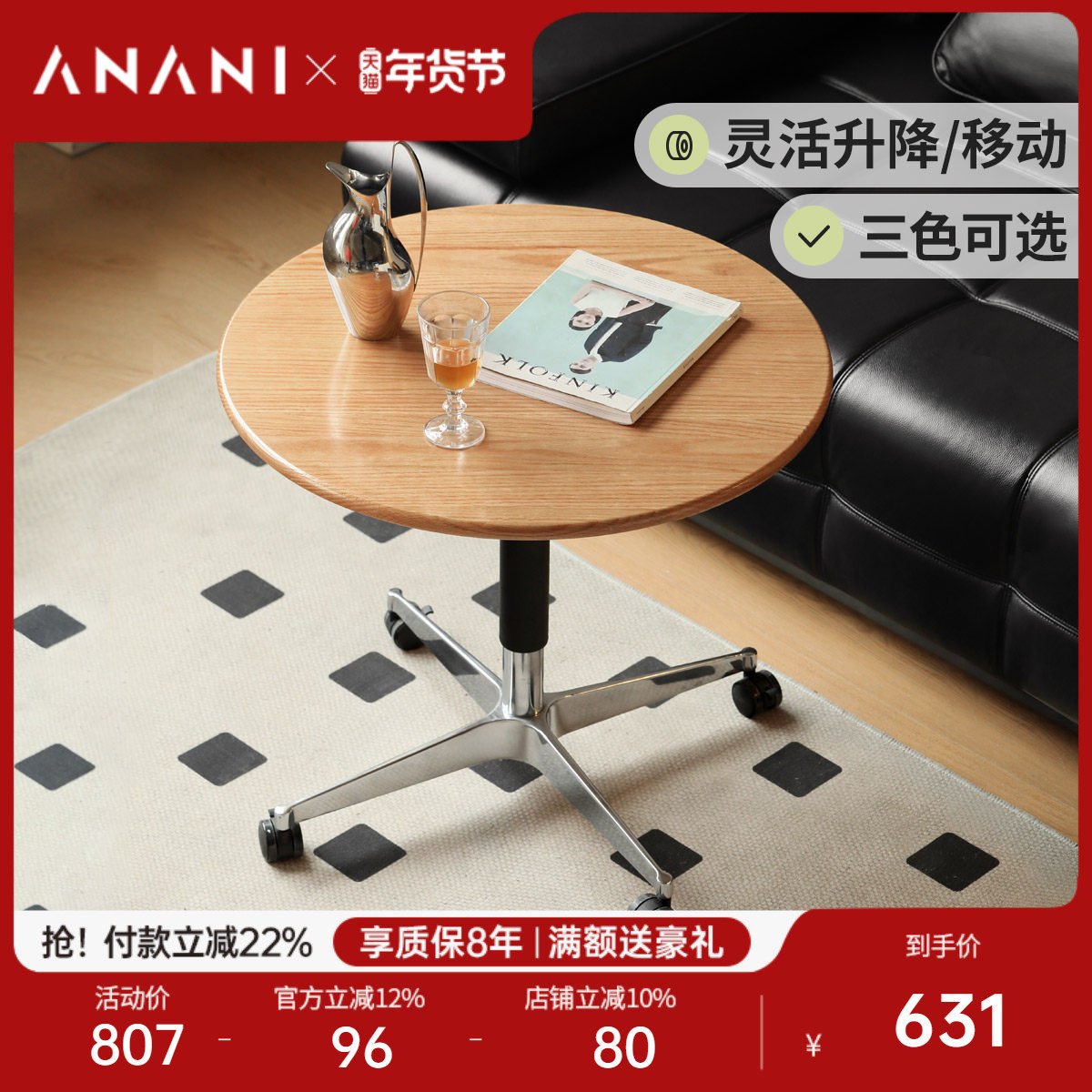 源氏木语阿纳尼实木升降茶几客厅黑色移动圆几餐桌小户型沙发边几