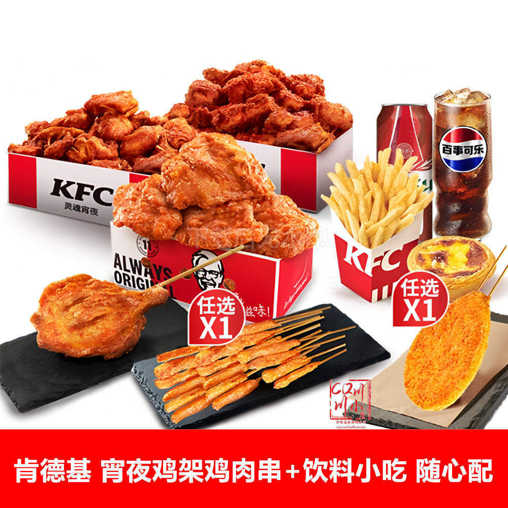 KFC肯德基优惠券宵夜大鸡腿串喷醋秘制川香炸果木鸡架鱿鱼代下单
