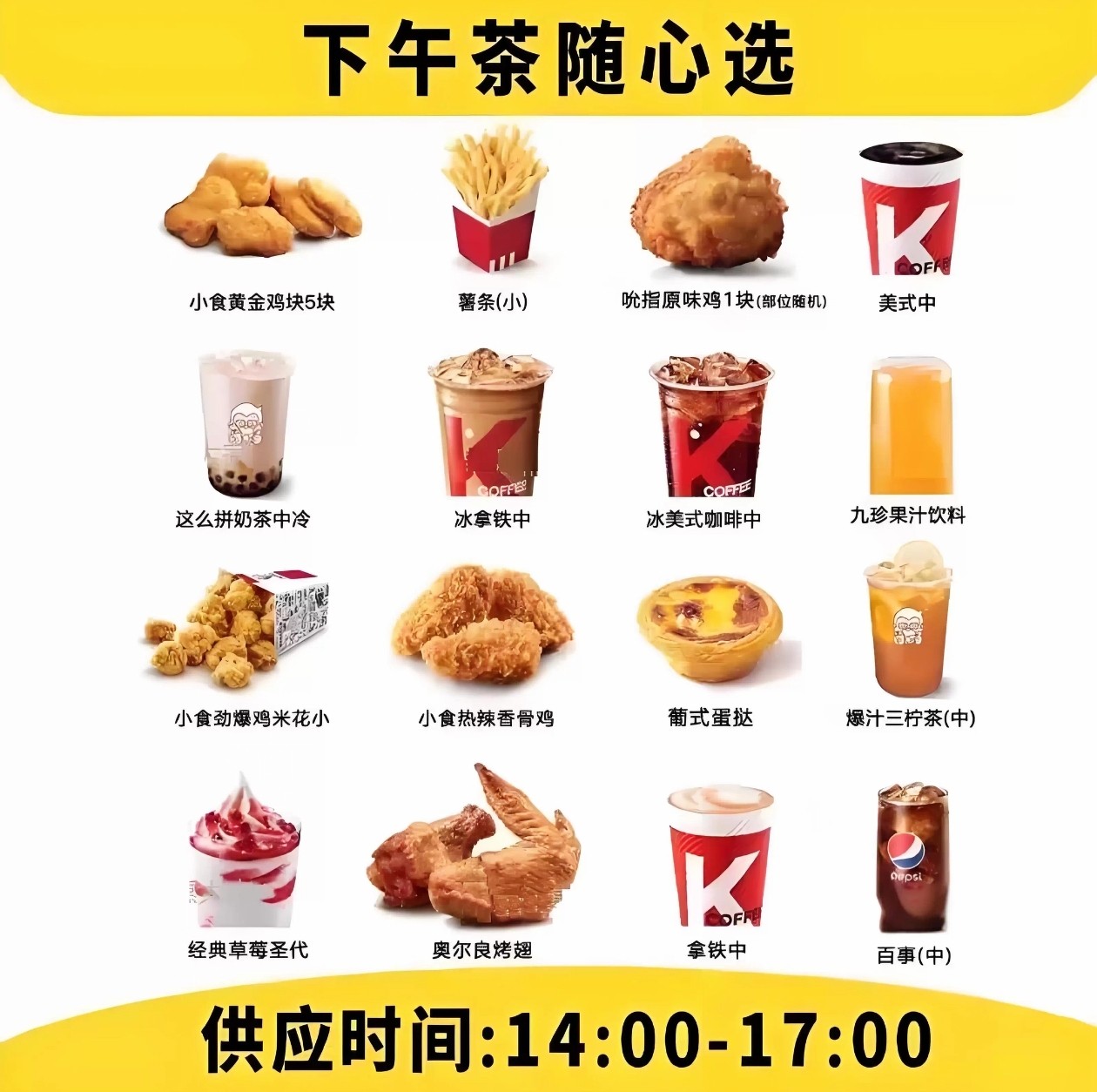 KFC肯德基下午茶代下单两件套黄金鸡块蛋挞薯条饮料全国优惠券