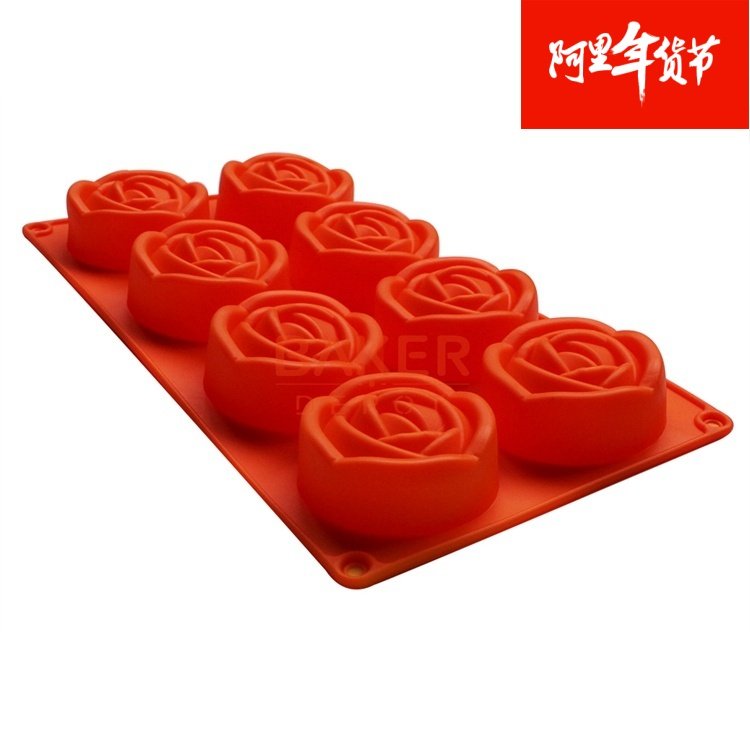 8连玫瑰花硅胶蛋糕烘培模具甜品糕点心模具手工皂基模具做冰块模