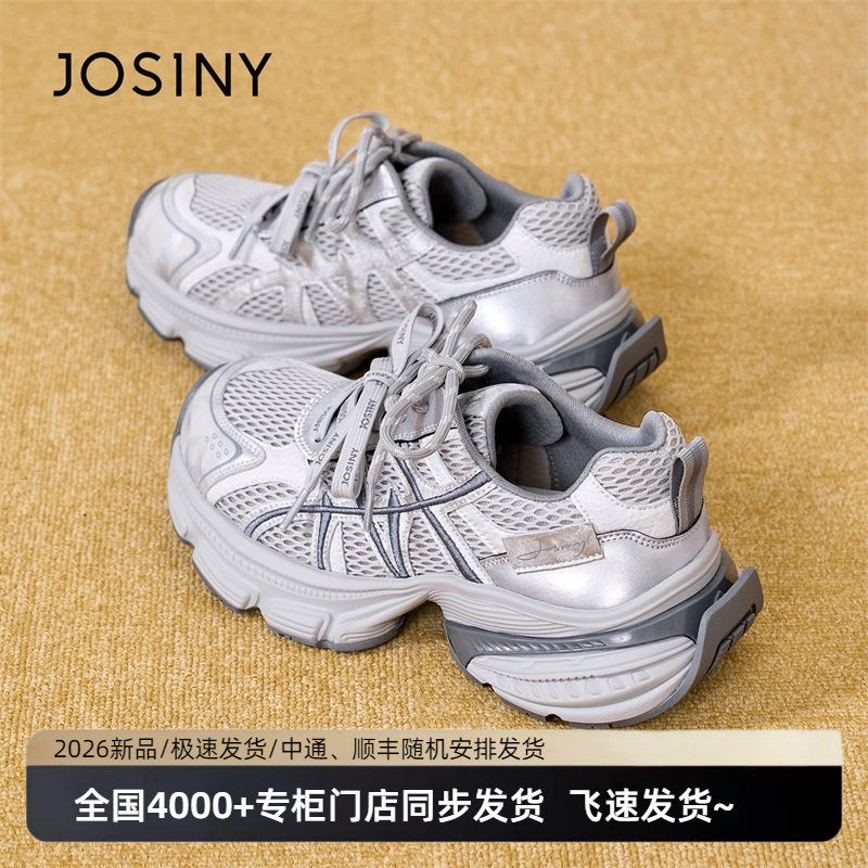 卓诗尼2026春季新款厚底老爹鞋女时尚舒适网面小个子休闲运动鞋女