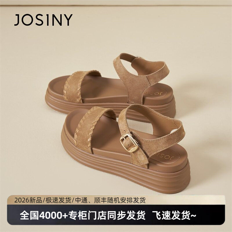 卓诗尼2026夏季新款厚底沙滩鞋时尚舒适运动凉鞋女休闲魔术贴凉鞋