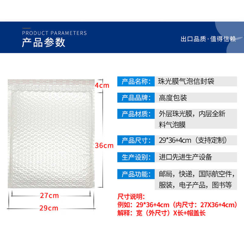 珠光膜气泡袋信封袋泡沫袋快递打包服装包装袋汽泡袋防震防水加厚