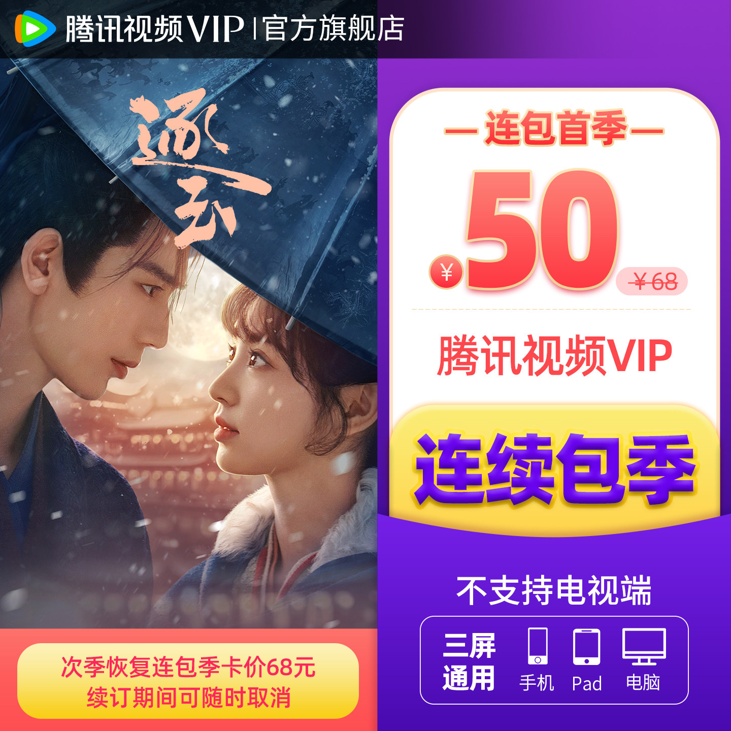 【官方旗舰店】腾讯视频VIP会员月卡一个月不支持电视端 逐玉