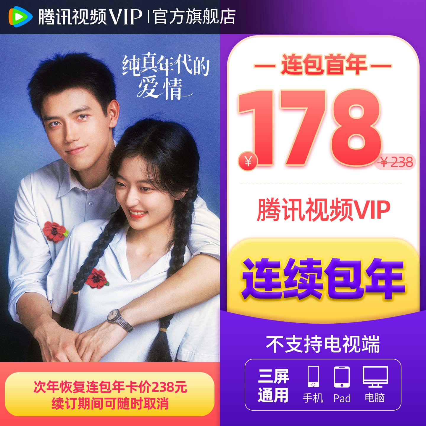 【连续包年】腾讯视频VIP会员年卡12个月不支持电视端 逐玉