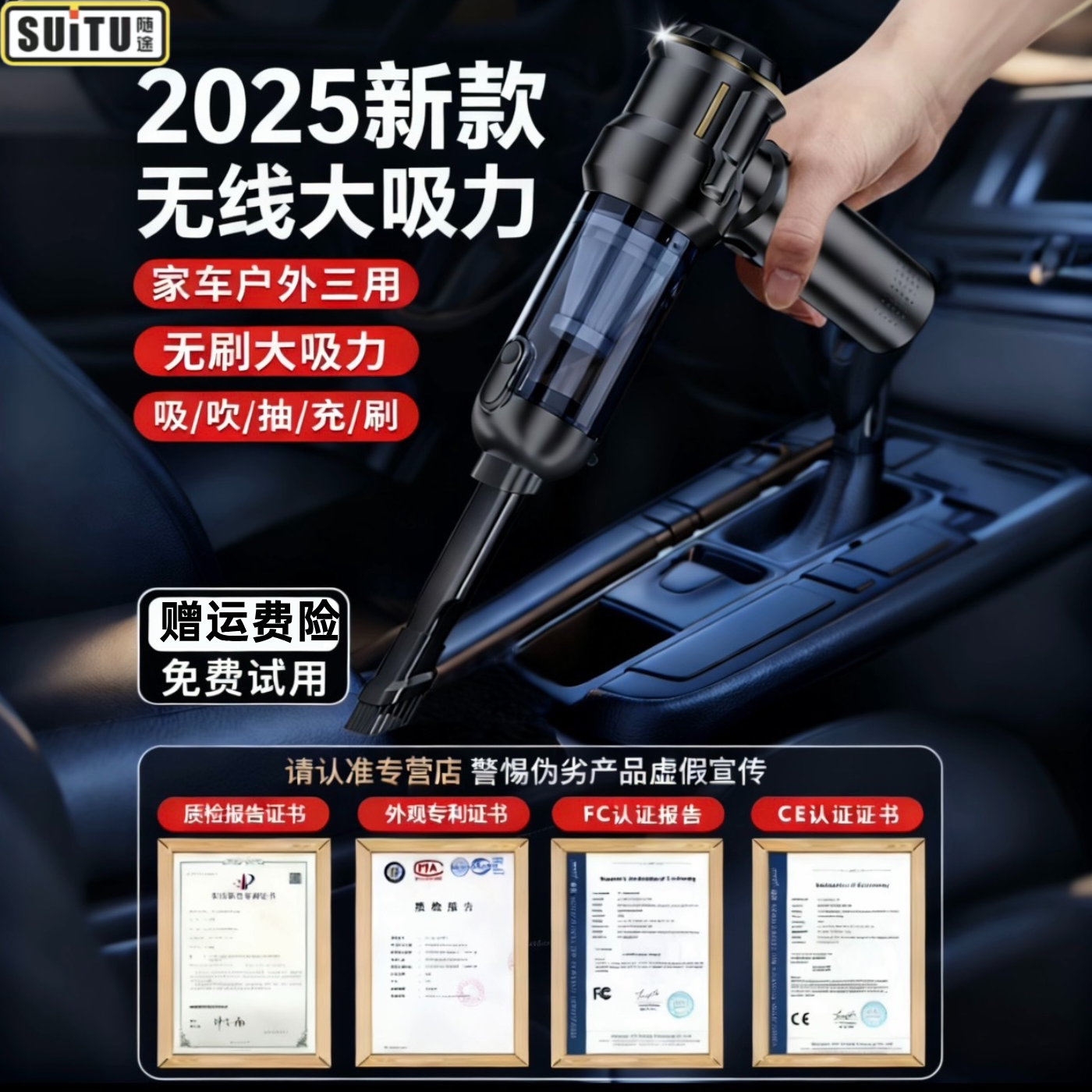 随途强力吸尘器车载家用吹吸充抽气四合一无线充电手持小型可折垫