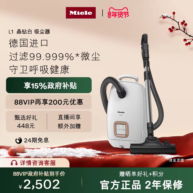 美诺Miele官方德国进口家用吸尘清洁小型有线强力吸尘器L1晶钻白