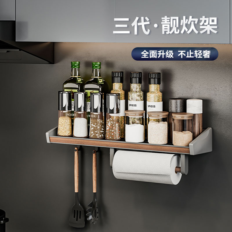 酷太厨房置物架壁挂架多功能调料收纳挂架免打孔墙面挂件纸巾架子