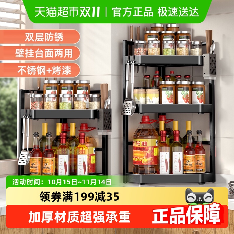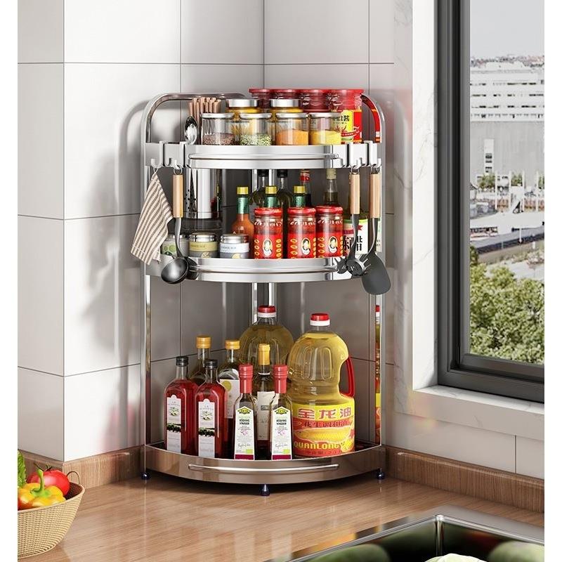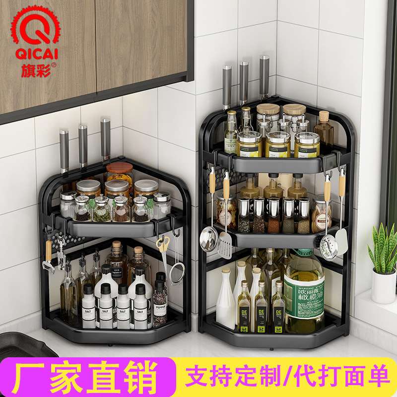 厨房转角置物架角落调料挂架墙角挂件调味品收纳免打孔多功能架子
