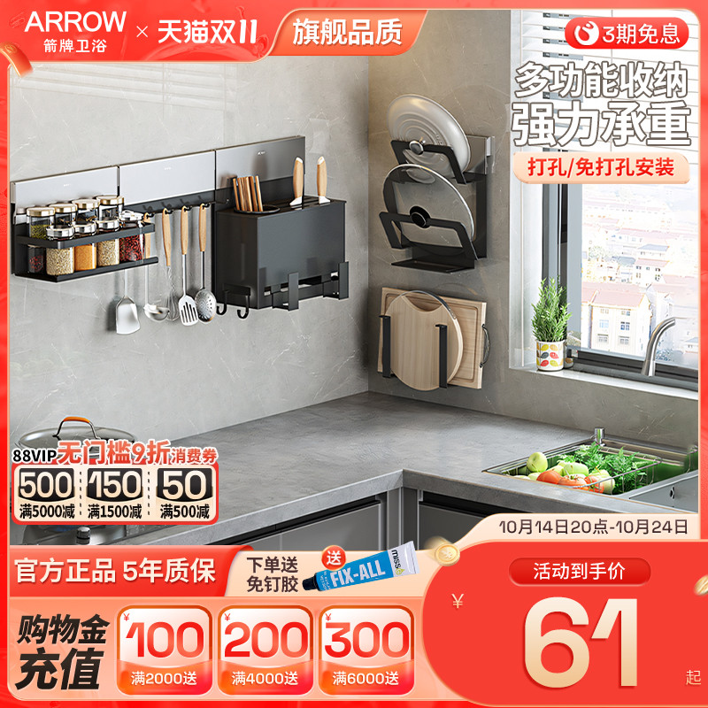箭牌厨房置物架壁挂式免打孔挂件刀架调料架锅盖架多功能收纳挂架
