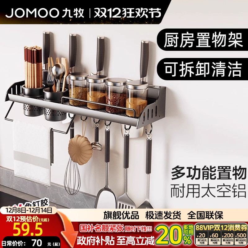 九牧厨房置物架免打孔双用挂件太空铝厨房挂架壁挂多功能分区置物