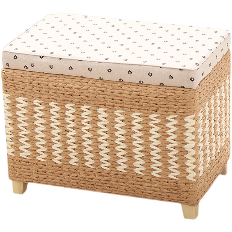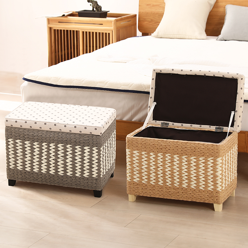 草编收纳凳储物凳子门厅换鞋凳沙发凳成人实木可坐人整理箱家用凳