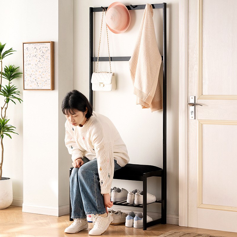 家用衣帽架落地北欧简易门口鞋架挂衣架一体门厅换鞋凳衣帽架鞋柜