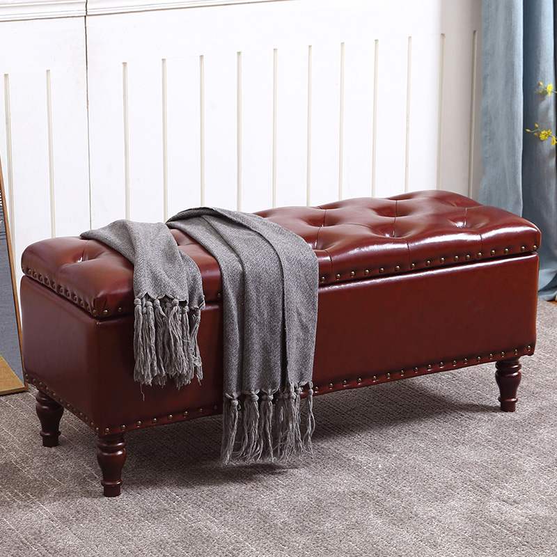 门厅换鞋凳储物凳美式床尾凳贵妃凳沙发脚踏凳服装店鞋店储物皮凳