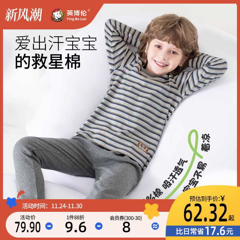 英博伦男童秋衣秋裤圆领薄款春秋款纯棉打底衫中大童儿童内衣套装