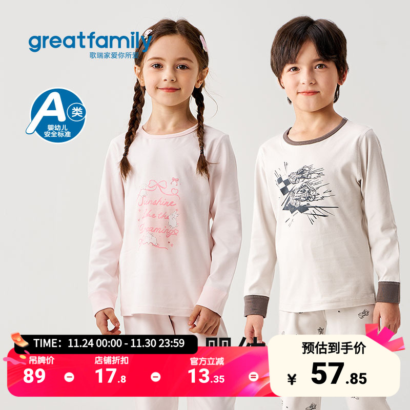 歌瑞家儿童家居服2025秋新款男女童长袖秋衣时尚纯棉圆领秋裤睡衣