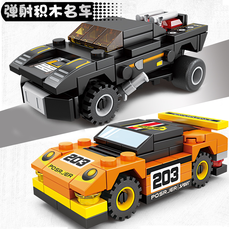 儿童积木小汽车玩具拼装组装跑车男生小颗粒拼插赛车弹射车积木6
