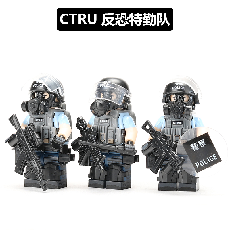 中国积木军事人仔拼装香港警察特种兵CTRU反恐特勤队男生拼插玩具