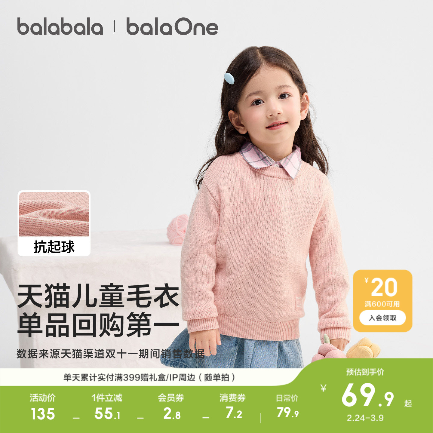 巴拉巴拉童装儿童毛衣男童女童2026新款春秋宝宝套头毛衫针织打底