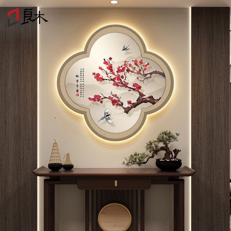 梅兰竹菊新中式挂画玄关装饰画入户正对门带灯茶室餐厅壁画花鸟画