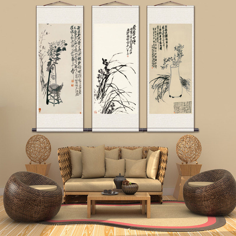 梅兰竹菊新中式挂画布艺装饰画茶室玄关客厅书房间墙画壁画植物画