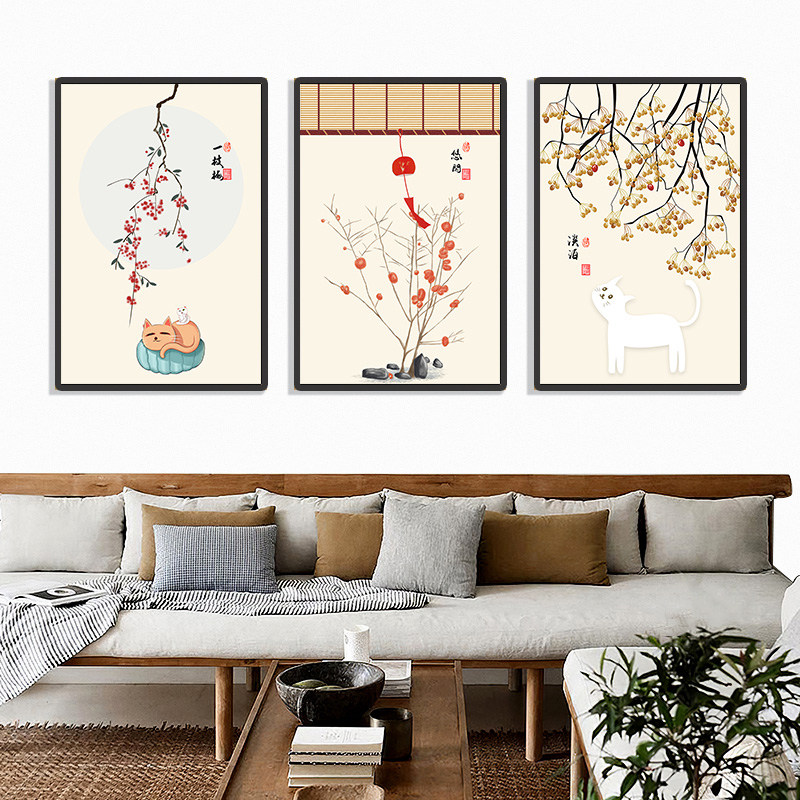 原创事事如意侘寂风装饰画客厅民宿茶室入户玄关高级感新中式挂画