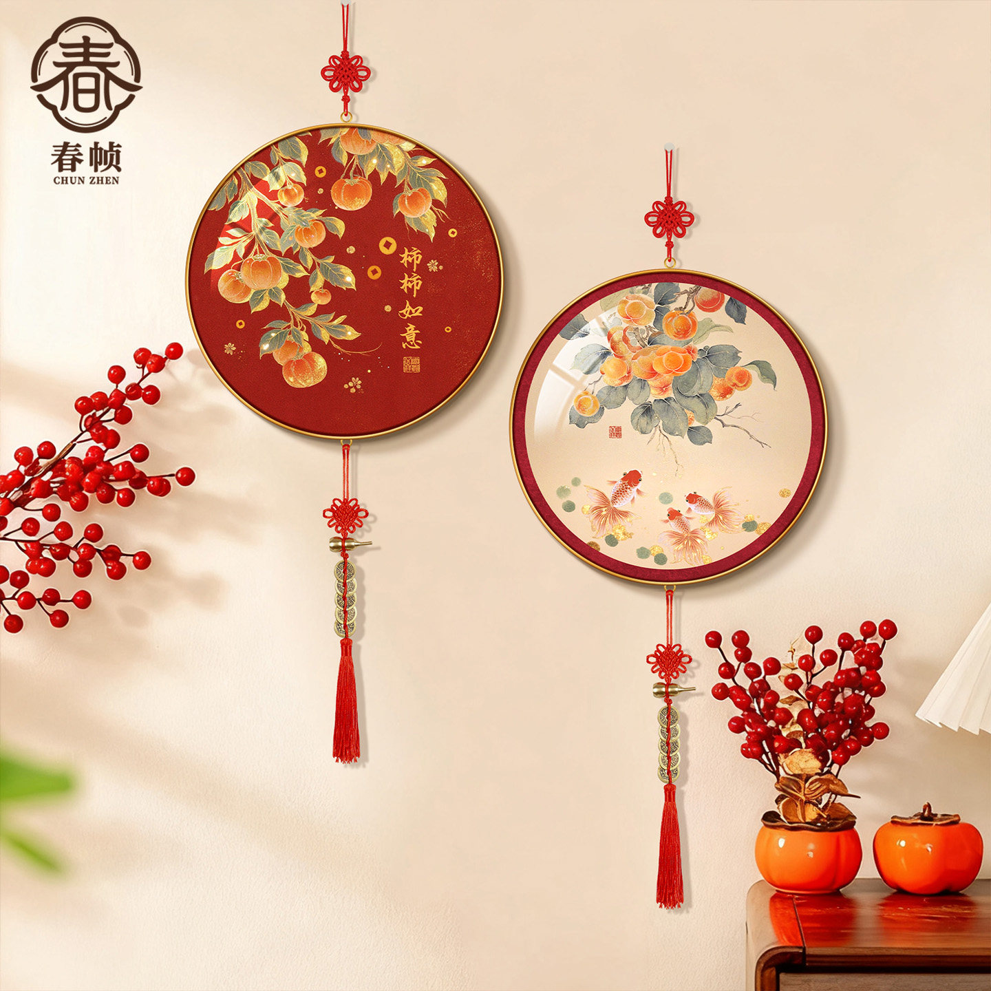 柿柿如意玄关装饰画乔迁入户门背景墙中国结挂饰寓意好新中式挂画