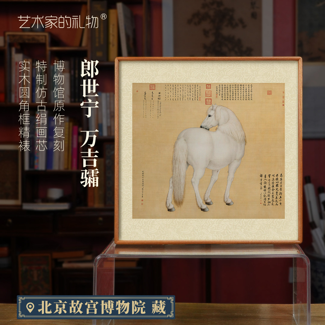 清·郎世宁《万吉骦》客厅装饰画入户玄关新中式挂画马到成功国画