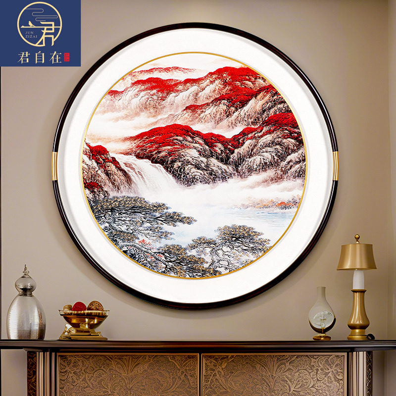 茶室装饰画圆形山水画新中式挂画玄关客厅背景墙壁画办公室靠山图