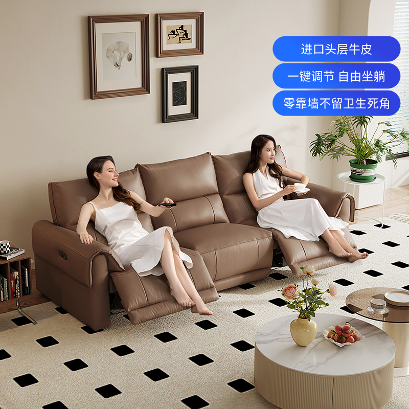 真皮电动功能中古风油蜡真皮沙发复古直排芝华士伸缩沙发客厅家具