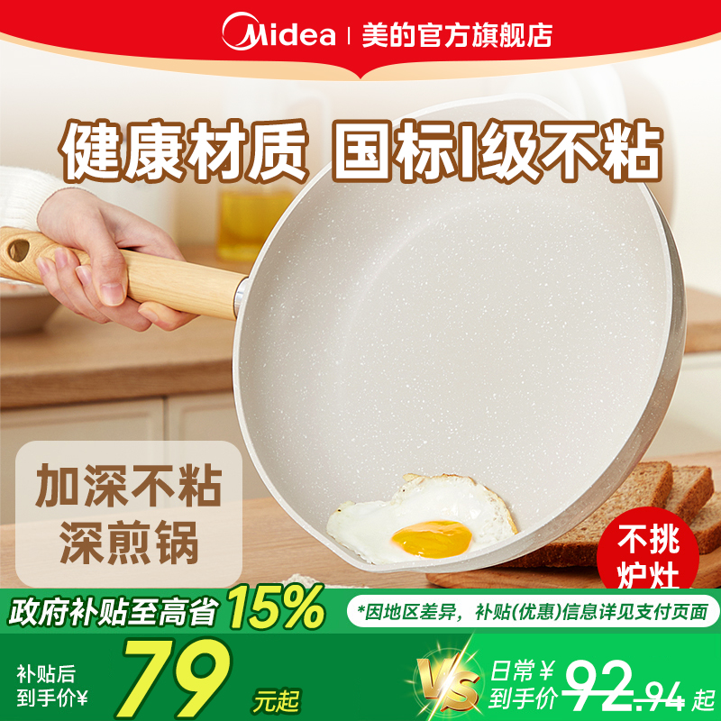 美的平底锅不粘锅家用麦饭石牛排煎锅不沾炒锅菜电磁炉煤气灶专用