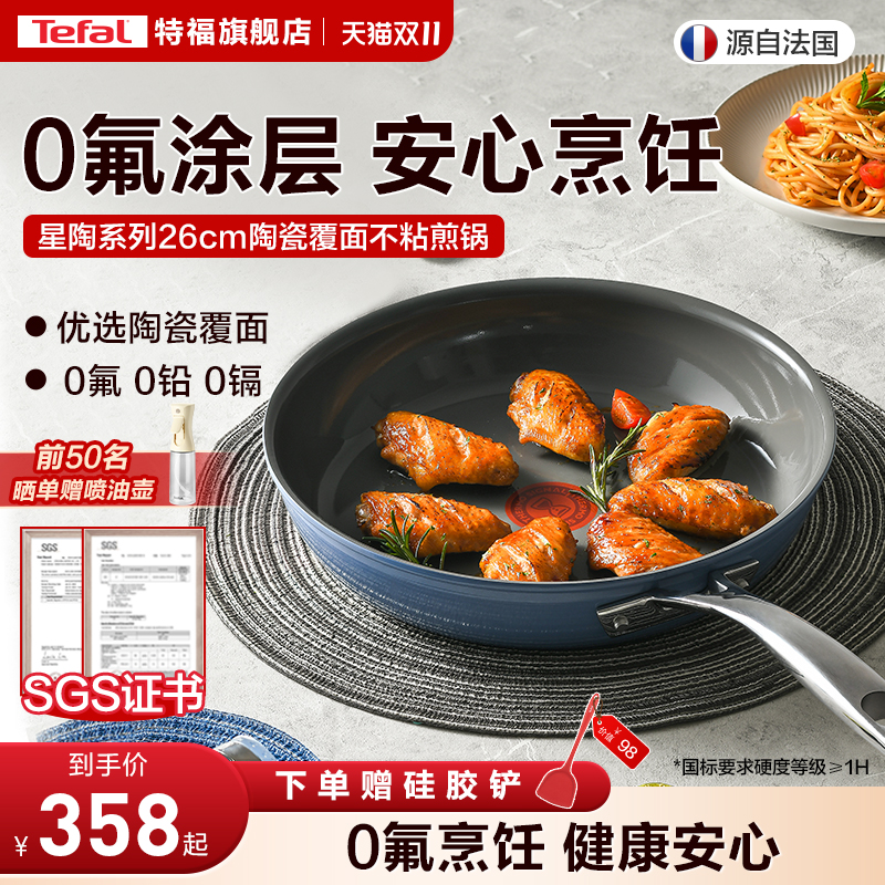 Tefal/特福平底锅煎锅不粘锅家用煎蛋牛排煎锅陶瓷覆层电磁炉通用