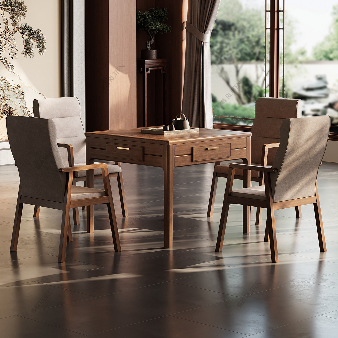 新款全自动麻将机餐桌两用四口机静音机麻带椅子家用麻将桌棋牌室