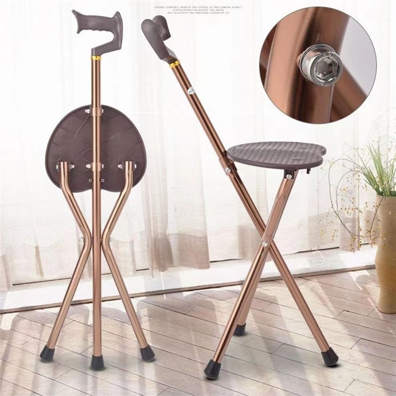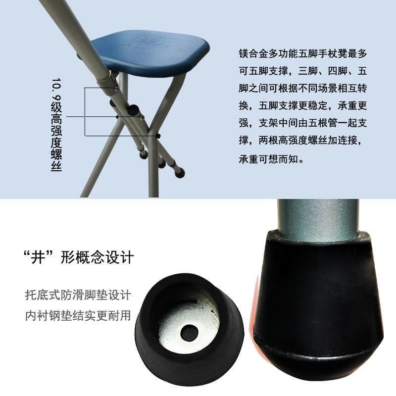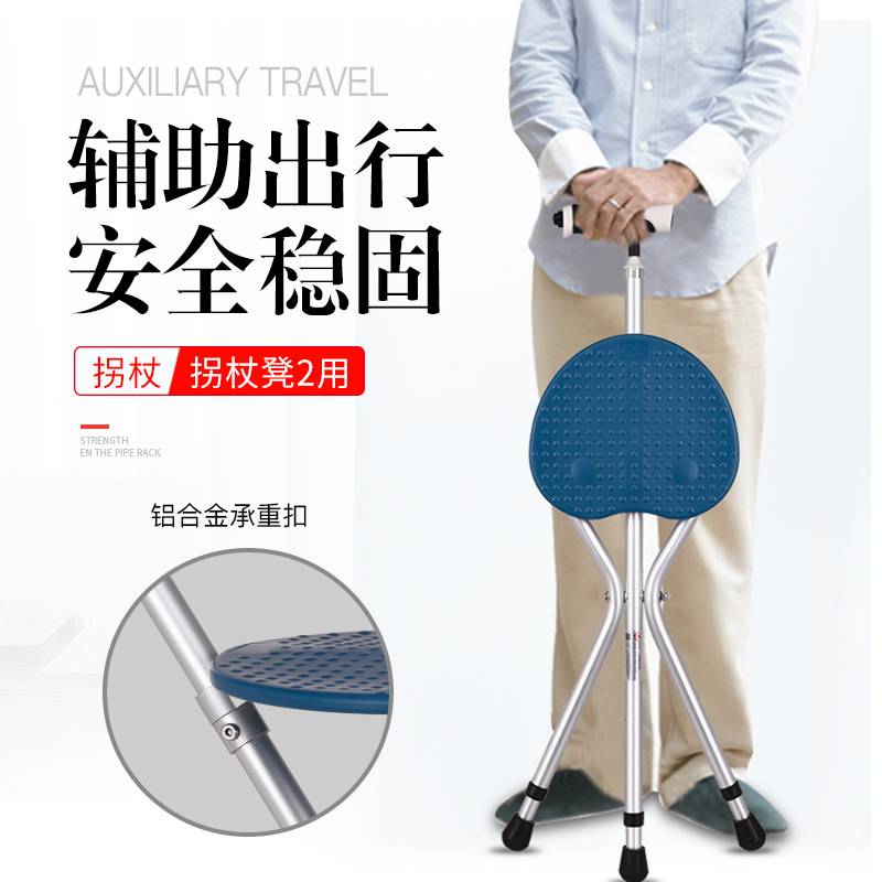 老人铝合金拐杖椅子拐棍老人手杖三脚椅凳多功能防滑折叠带凳轻便