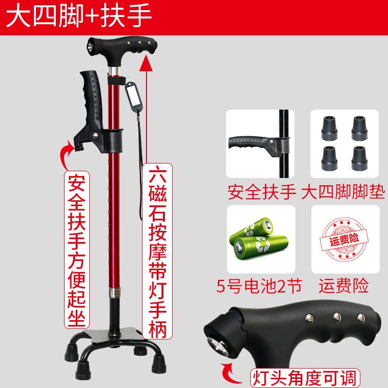 拐棍老人手杖稳固大四脚防滑多功能老年拐杖四腿拐仗轻便带灯伸缩