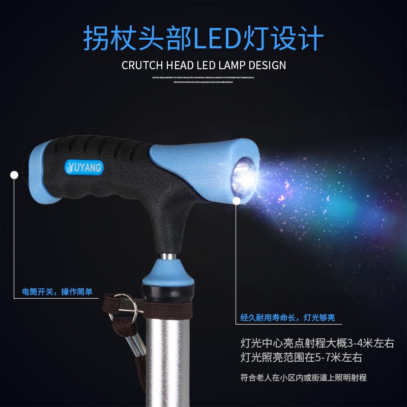 加大四角登山杖拐棍老人手杖可伸缩调节高度带灯可选钢圈加固防滑