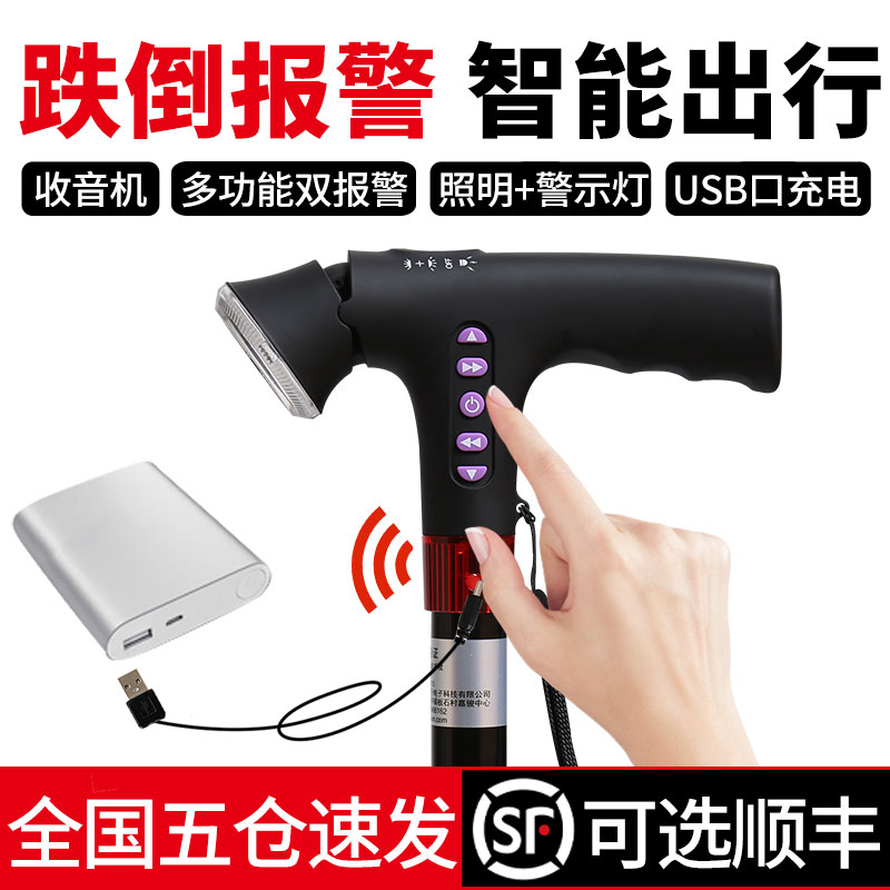 智能拐杖拐棍老人手杖四脚多功能防滑轻便捌杖老年人助行器带报警