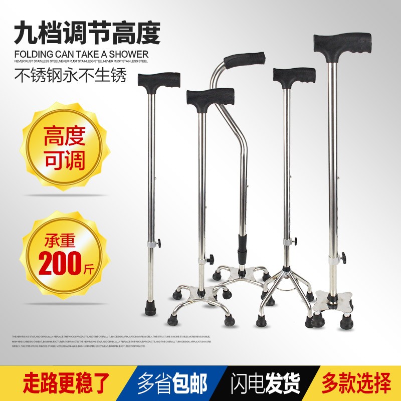 铝合金四脚拐杖防滑不锈钢加厚老年拐棍老人手杖可调高低轻便助行