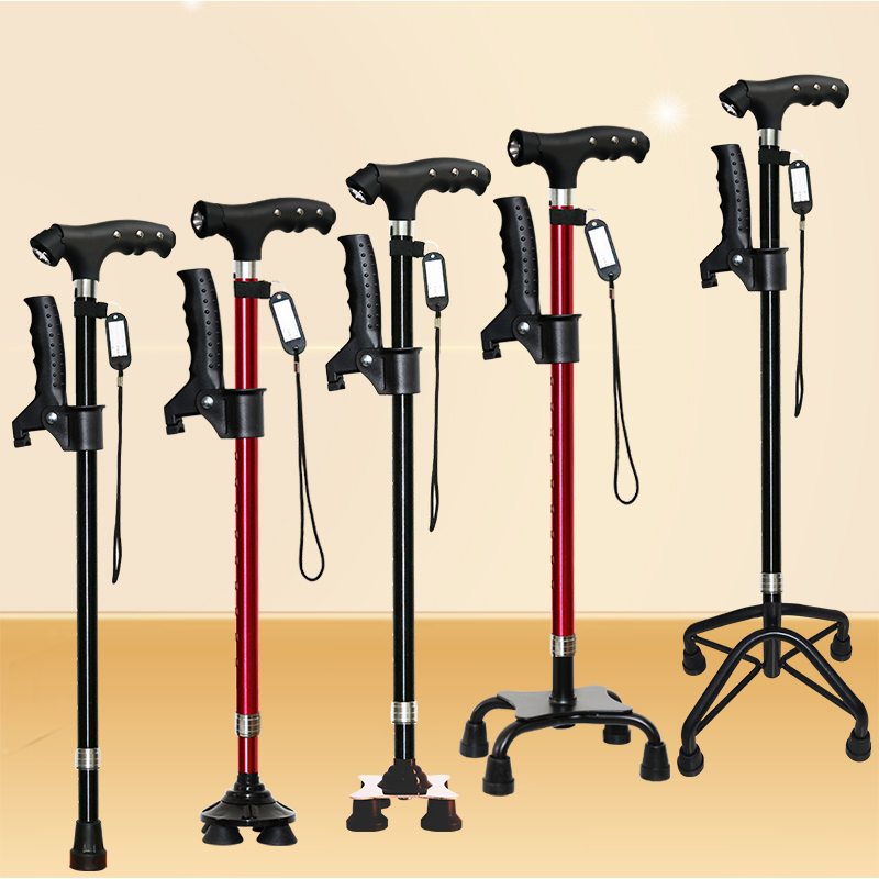 老人拐杖四脚轻便防滑手杖老年人多功能带灯拐棍捌杖助步器捌杖头