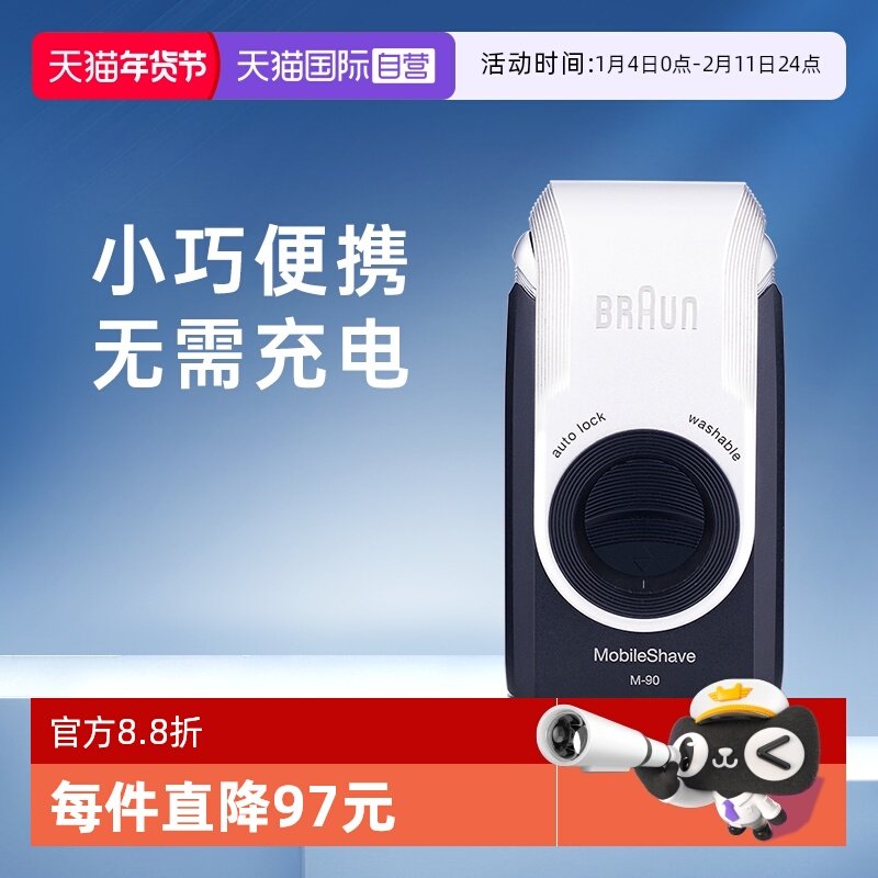 【自营】博朗电动剃须刀便携迷你M90往复干电池式刮胡刀差旅车载