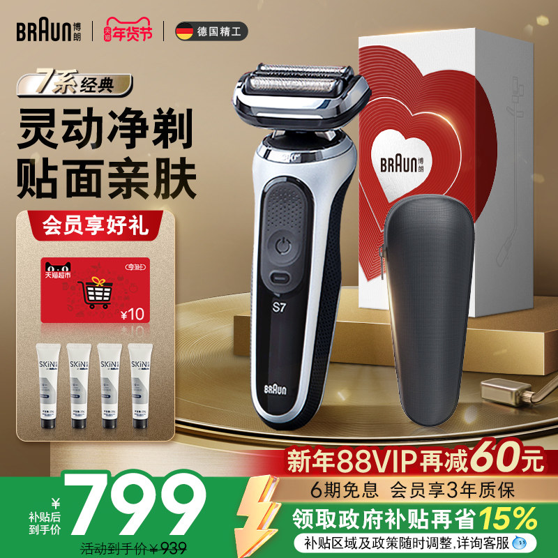 【情人节礼物】博朗雷霆7系7200cc电动剃须刀往复式便携刮胡刀