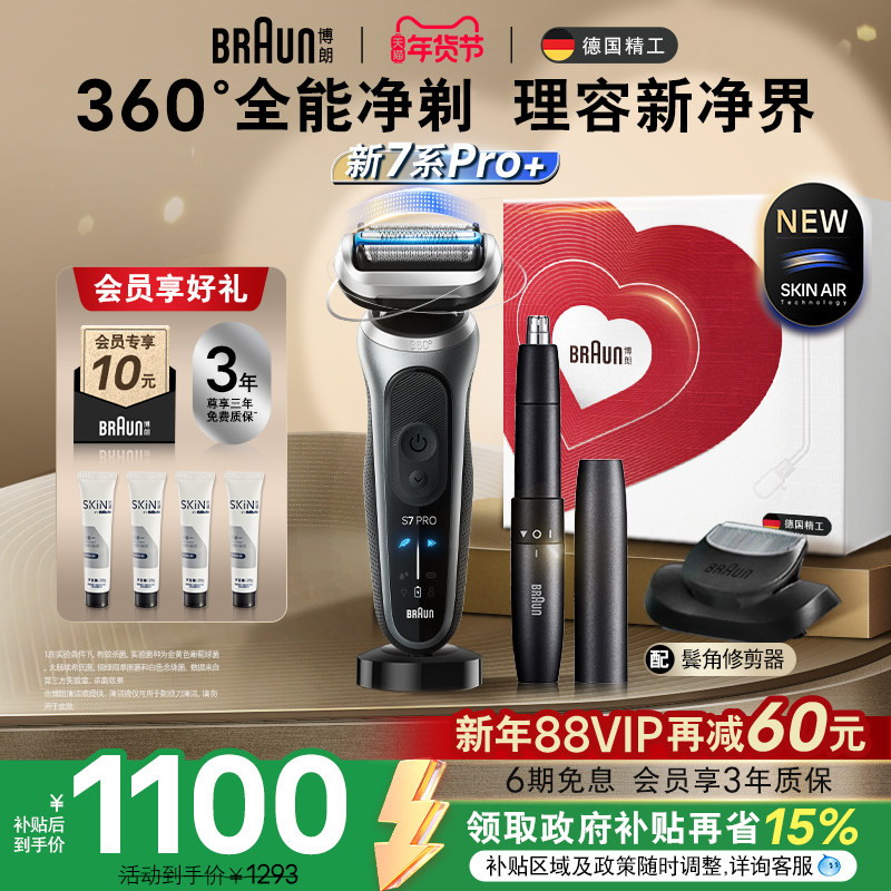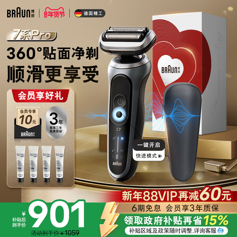 【情人节礼物】博朗7系Pro+73-G82012cs电动剃须刀便携新品刮胡刀