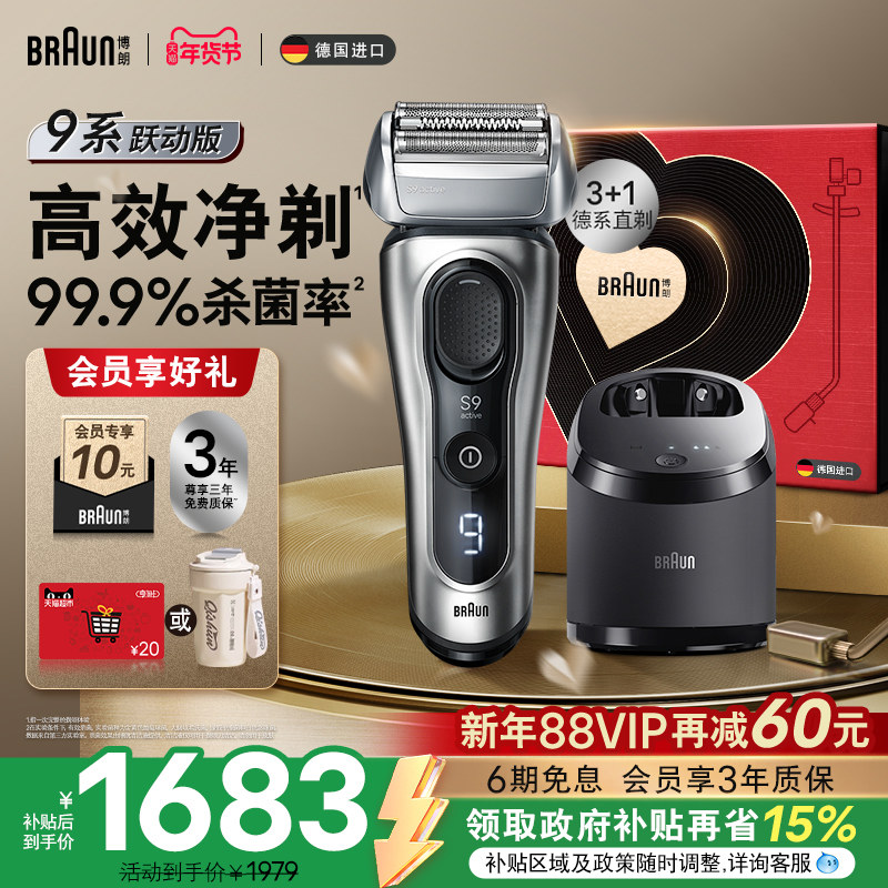 博朗9系顶配尊享男士电动剃须刀便携往复式原装进口刮胡刀情人节