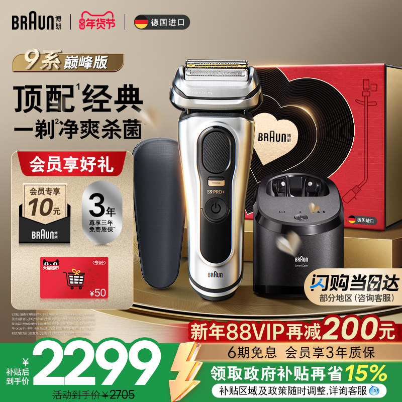 【情人节礼物】博朗9系巅峰版电动剃须刀往复式刮胡刀便携送男友