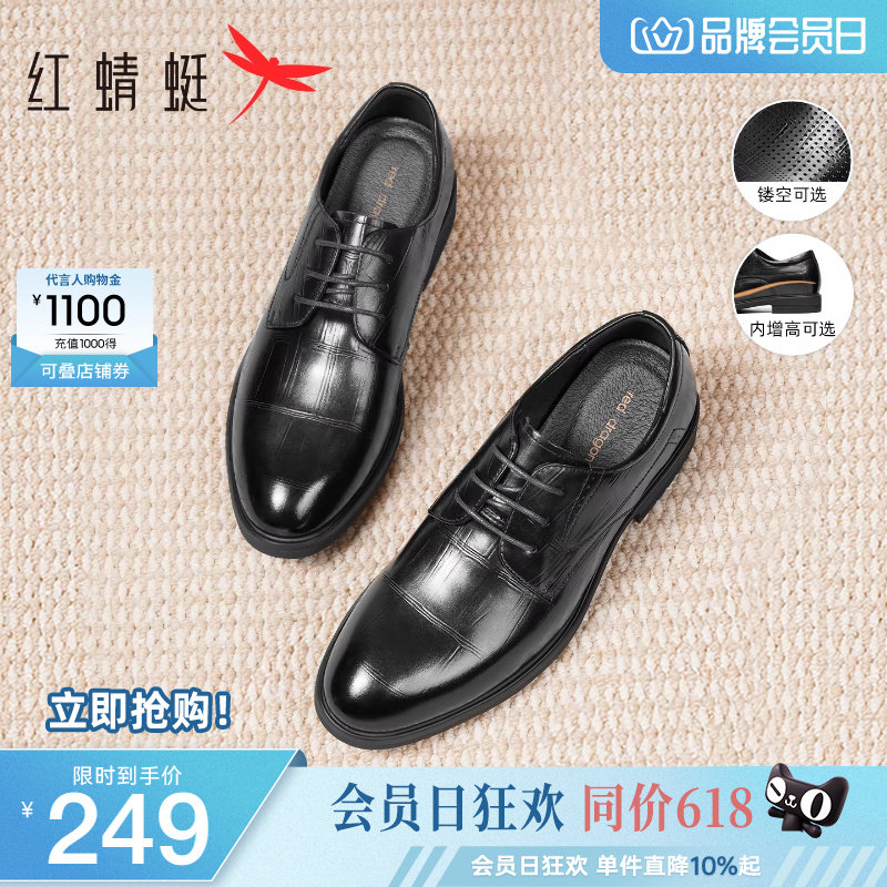 红蜻蜓男鞋商务正装皮鞋男真皮增高德比鞋子年轻人结婚新郎鞋男士