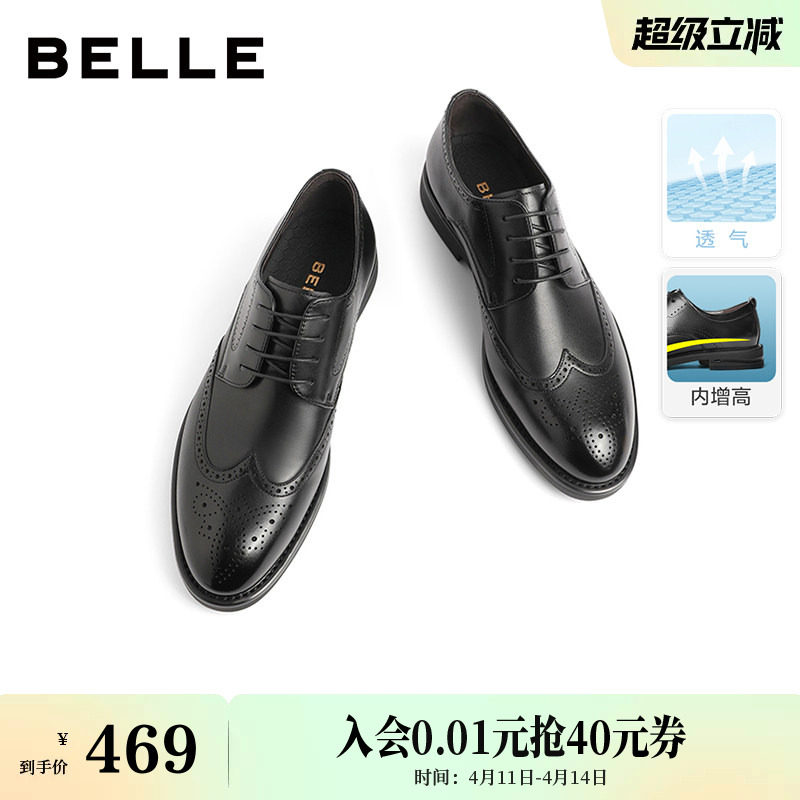 百丽男鞋商务内增高真牛皮鞋男士夏季新郎结婚鞋布洛克正装7TN01A