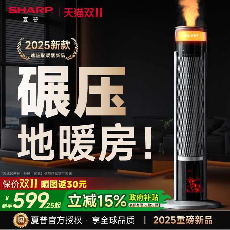夏普2025新款取暖器全屋大面积暖风机家用节能省电神器石墨烯冬