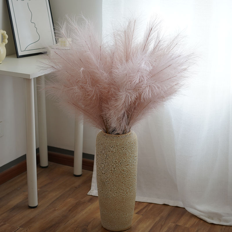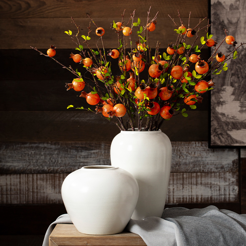 油画雾凇仿真绿植高级惬意感侘寂风干花花束客厅书房插花陶瓷摆件