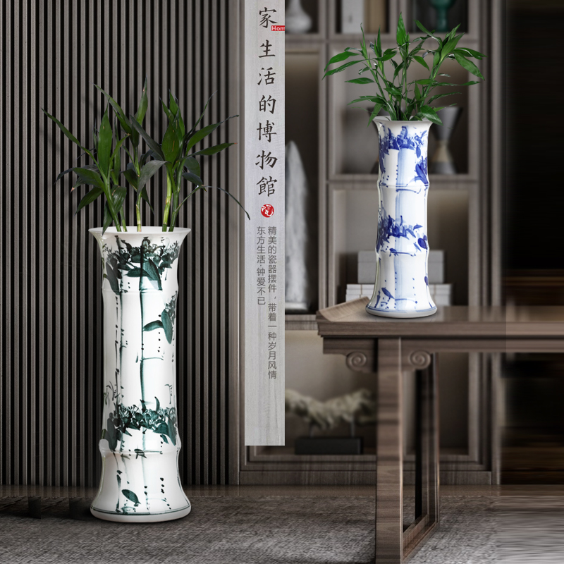 景德镇青花瓷富贵竹花瓶中式古典复古风大号花瓶客厅陶瓷摆件插花