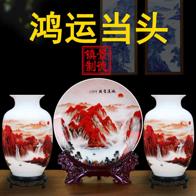 景德镇陶瓷摆件高端家居装饰品客厅博古架瓷器工艺品鸿运当头花瓶